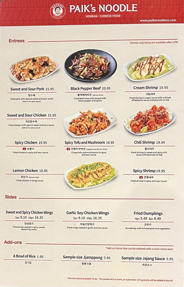 Paik’s Noodle: Hong Kong Ban Jum 0410 Menu (Update 2025)